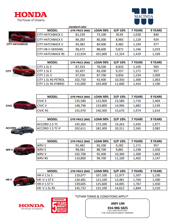 Hubungi saya sekarang untuk sebarang pertanyaan berkaitan promosi terbaru Honda. Saya akan bantu uruskan order anda dengan Pantas & Profesional.